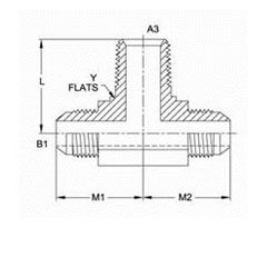 | Product ID | Description | TUBE O.D. | B1 SAE 37 | B2 SAE 37 | A3 NPTF | B1 DRILL | B2 DRILL | A3 DRILL | M1 LGTH | M2 LGTH | L LGTH | Y FLATS |